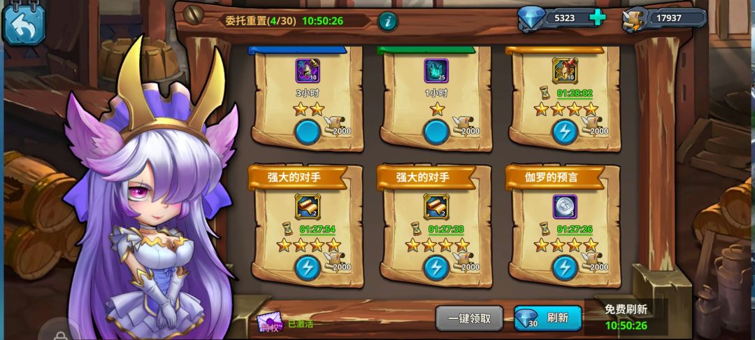 关于这个委托推荐做4星以上任务,当然你前期的话可以做三星的因为你可能刷出了4星,但是你并没有英雄去做这个任务,玩个一两天就可以开始接4星的了