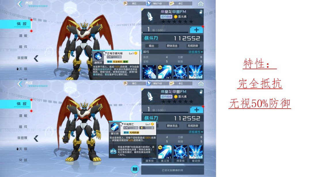 帝皇龙甲兽(限时)+正义兽(普池)+因子(2500进化积分或者100限时商店积分)