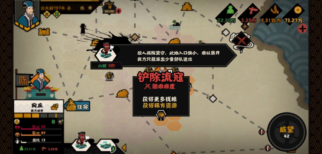 3、据点较多会持续消耗玩家兵力,导致故关决战失败。