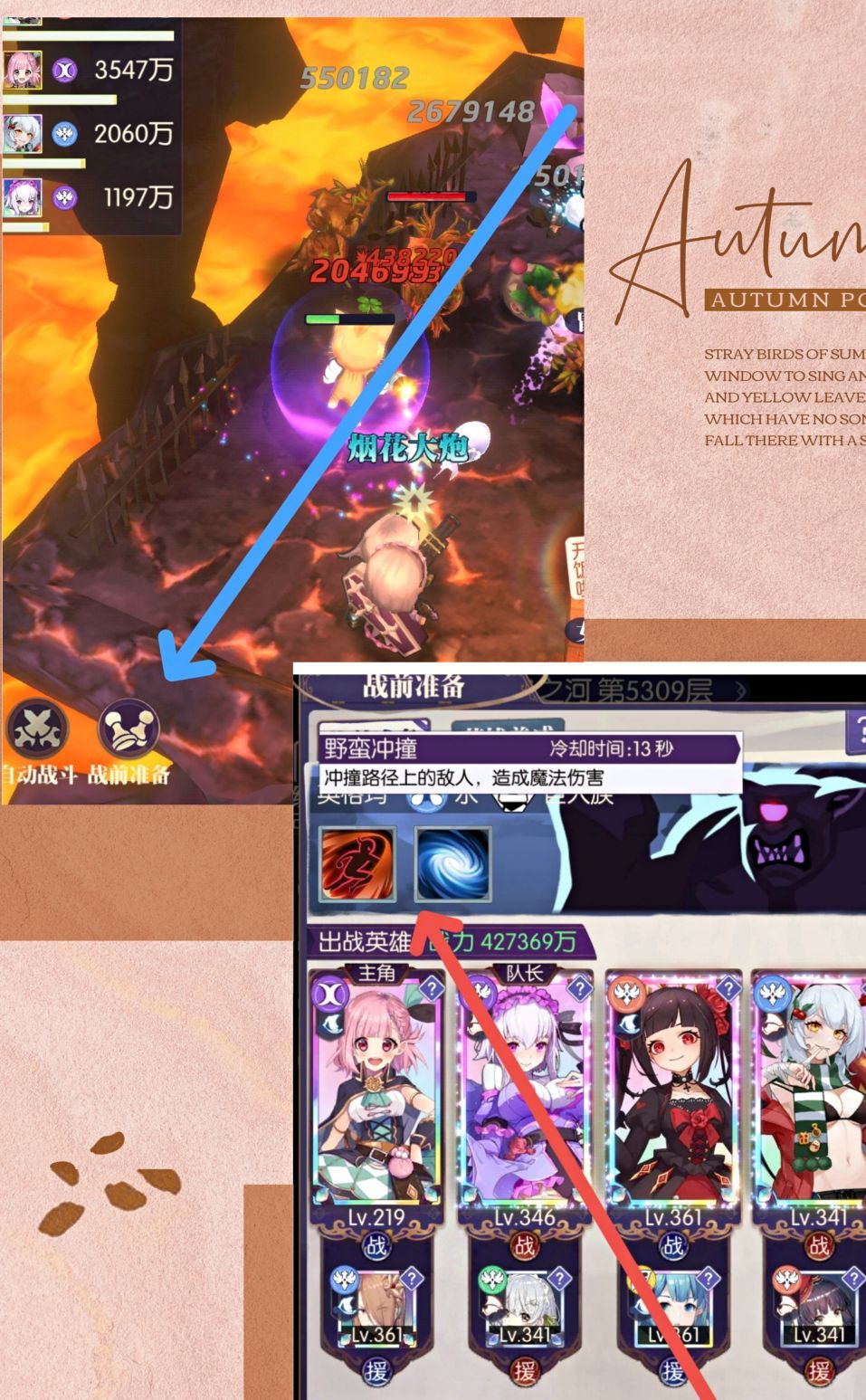 应对技能顾名思义是应对BOSS技能的,BOSS技能在楼层界面点战前准备(如下图)