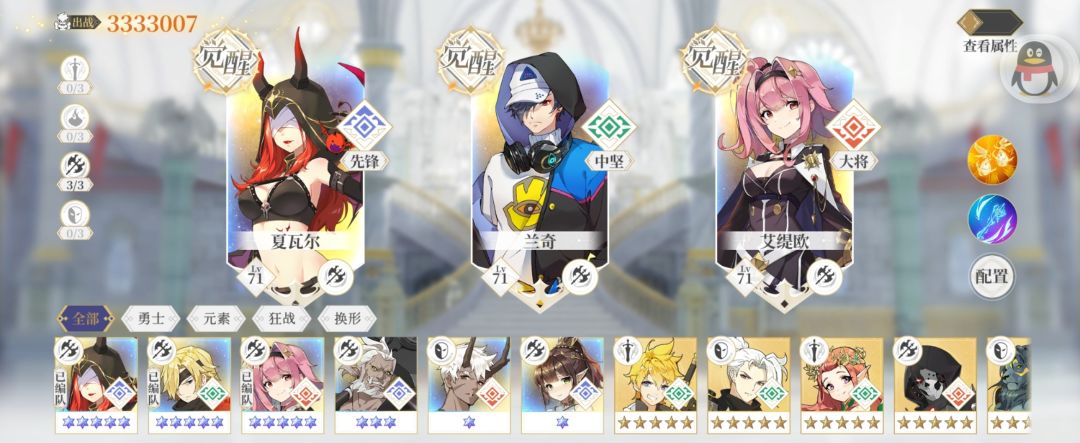 配队这里比较有争议的就是瞎子是否要三觉,我的推荐是要三觉,并且有条件的话还是要在主副c五觉开专武后尽快把瞎子拉到五觉开专武。