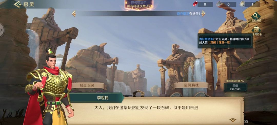 1,启灵界面右下角有个 灵值,当灵值达到666点以上,概率会翻300% ,启灵时注意找好时机