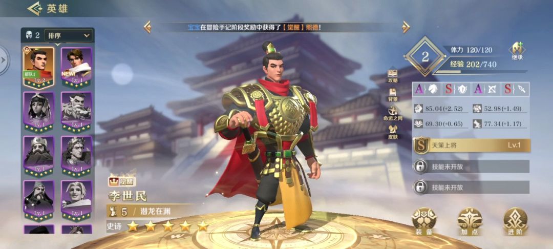 2,六元开荒队:关羽,熙德,玛丽一世/西奥多拉(连紫色都没的话,就随意上个自己现有的觉醒了的)技能选择上,优先上能施加灼烧,对灼烧产生反应的技能,实在没有就任选输出(注意给英雄佩戴对应属性的技能,武力带物理技能,智力带战术技能)