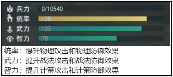 曹仁统率和武力值较高,但是智力数值较低,这意味着相比于计策攻击队伍来说,曹仁更擅长应对物攻以及战攻的队伍,弱策攻。