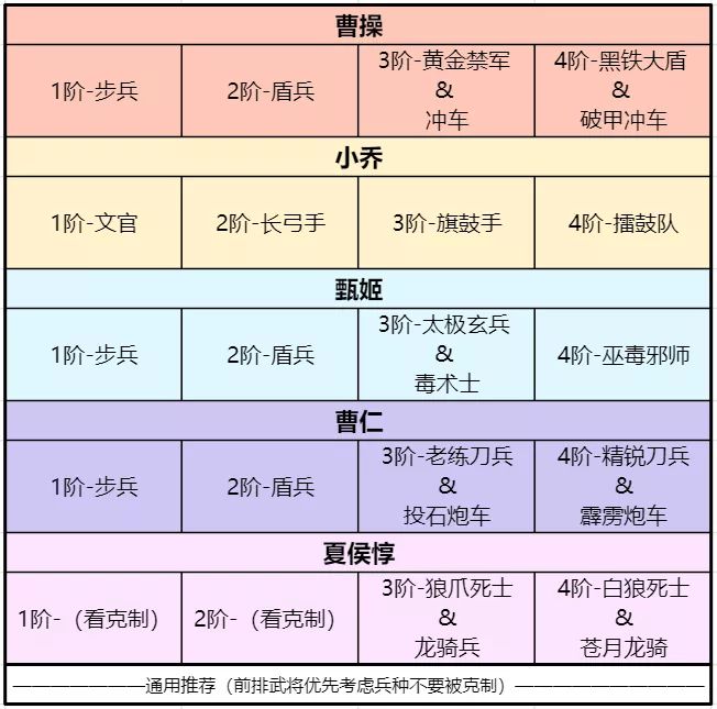 推荐曹仁配合上其他群伤高输出武将,同时队内需要有能够提供大量士气恢复的武将或者兵种存在。
