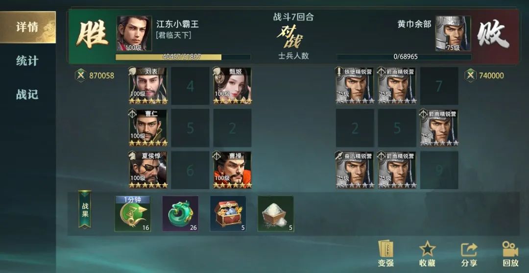 思路:曹仁和夏侯惇两人均可以降低敌方士气值,压制了敌方的输出,能够让我方有足够的回合时间去消磨敌方的兵力,并逐渐恢复自己的血量。