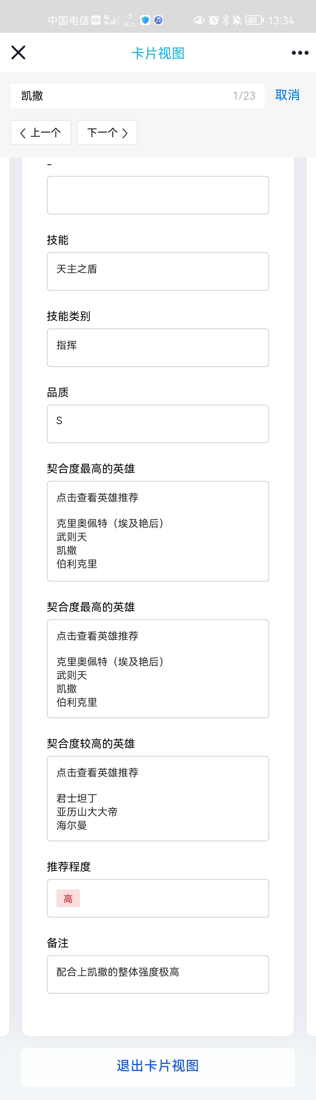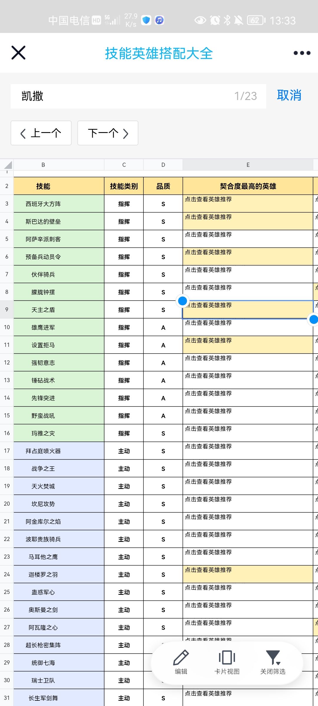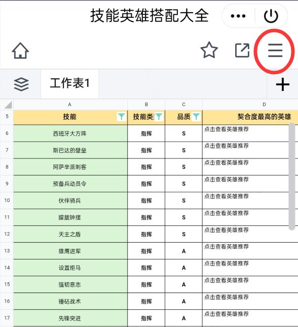接下来说一下手机使用方法,链接里也有,首先查找输入英雄名称,技能后的查看英雄推荐就会变亮,然后点击卡片视图,就能看到技能的所以英雄推荐哦。