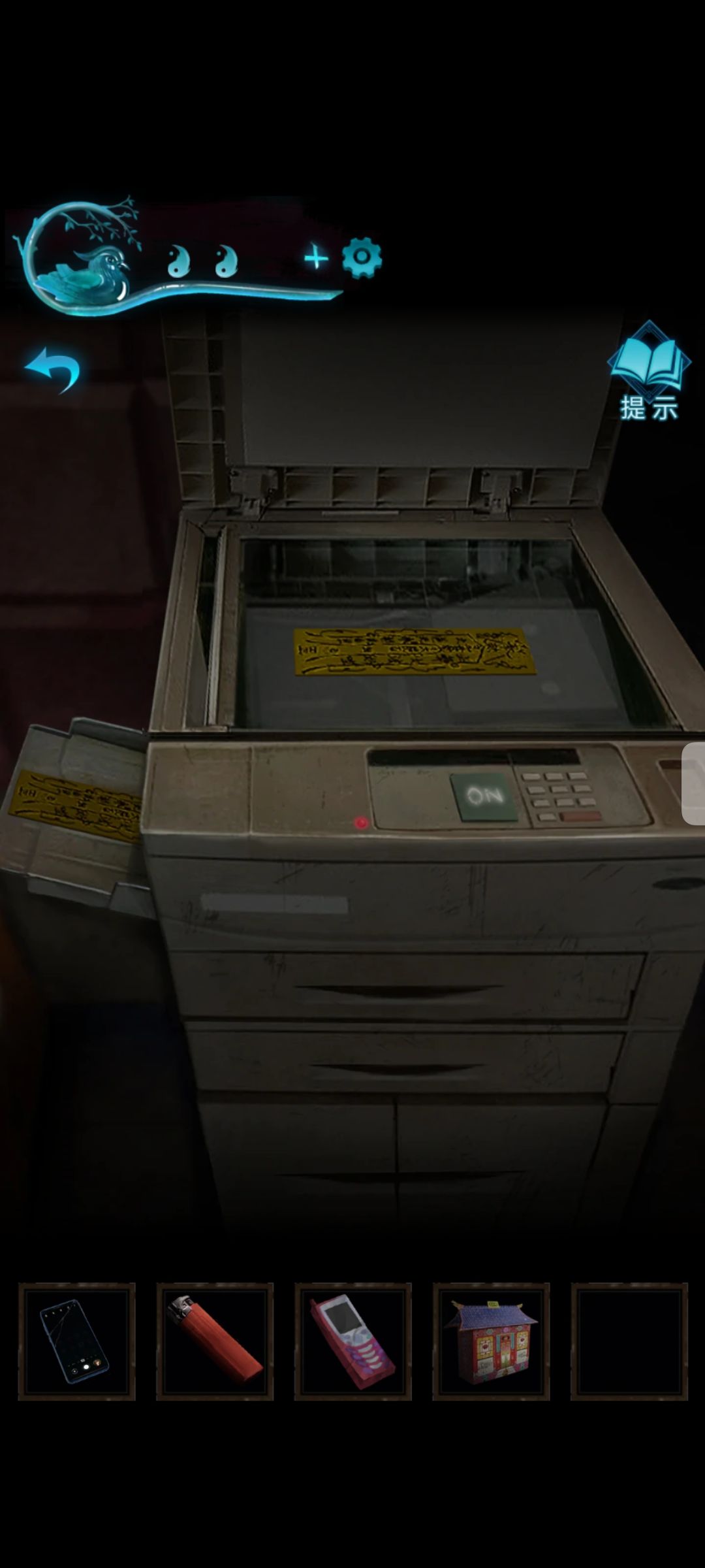 指甲刀剪开五神像前的插板,带走,到结婚屋连接插板,还记得我之前让拿的那个符咒吗,红屋里的那个,放在复印机上,把空白的也放上,先回红屋贴上。