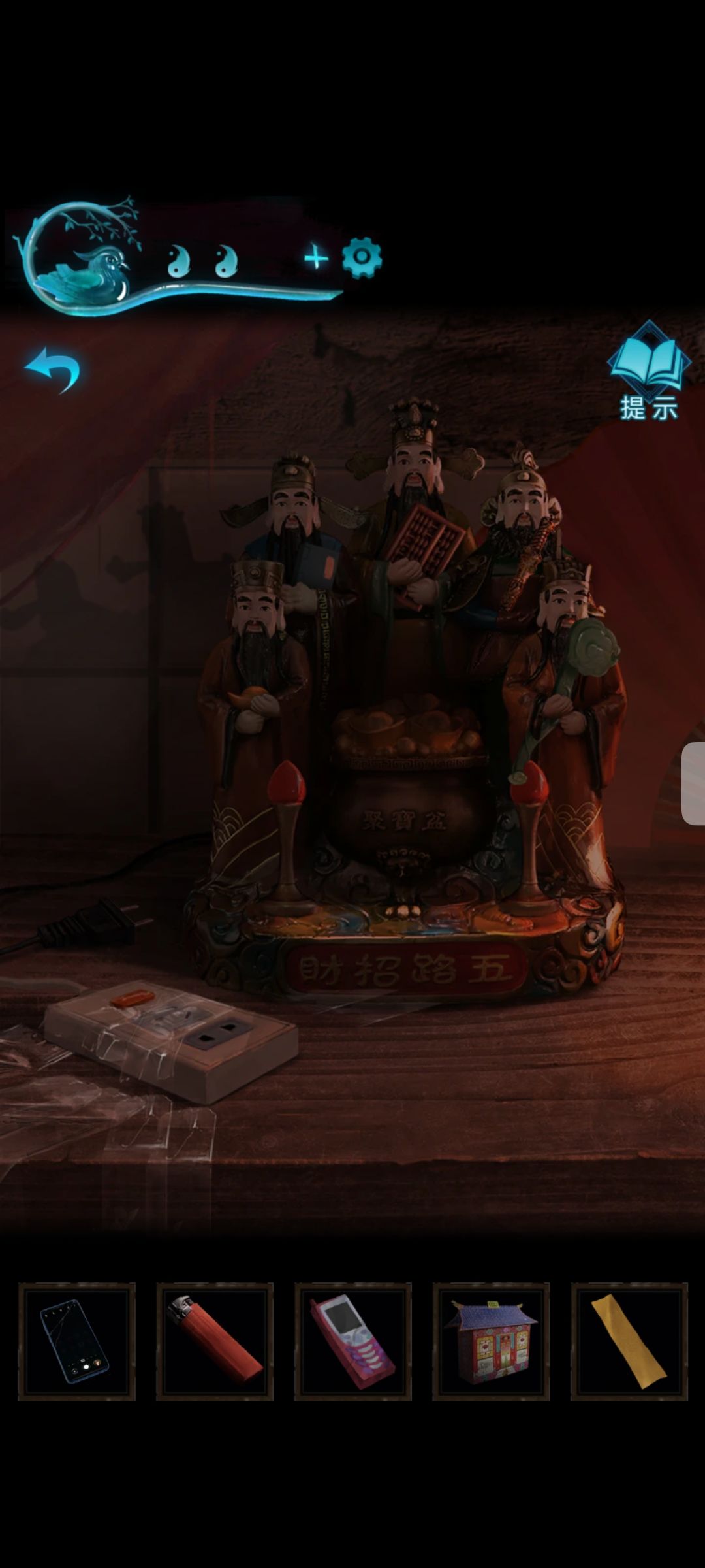 碗里得到吊坠,进到后面的街道,外面神像的电可以拔下来,进红屋子,桌子上的书里有解密需要的东西,看完把打火机带走,再把闸按绿,点左侧蜡烛位置,左侧蜡烛后面得到符咒。