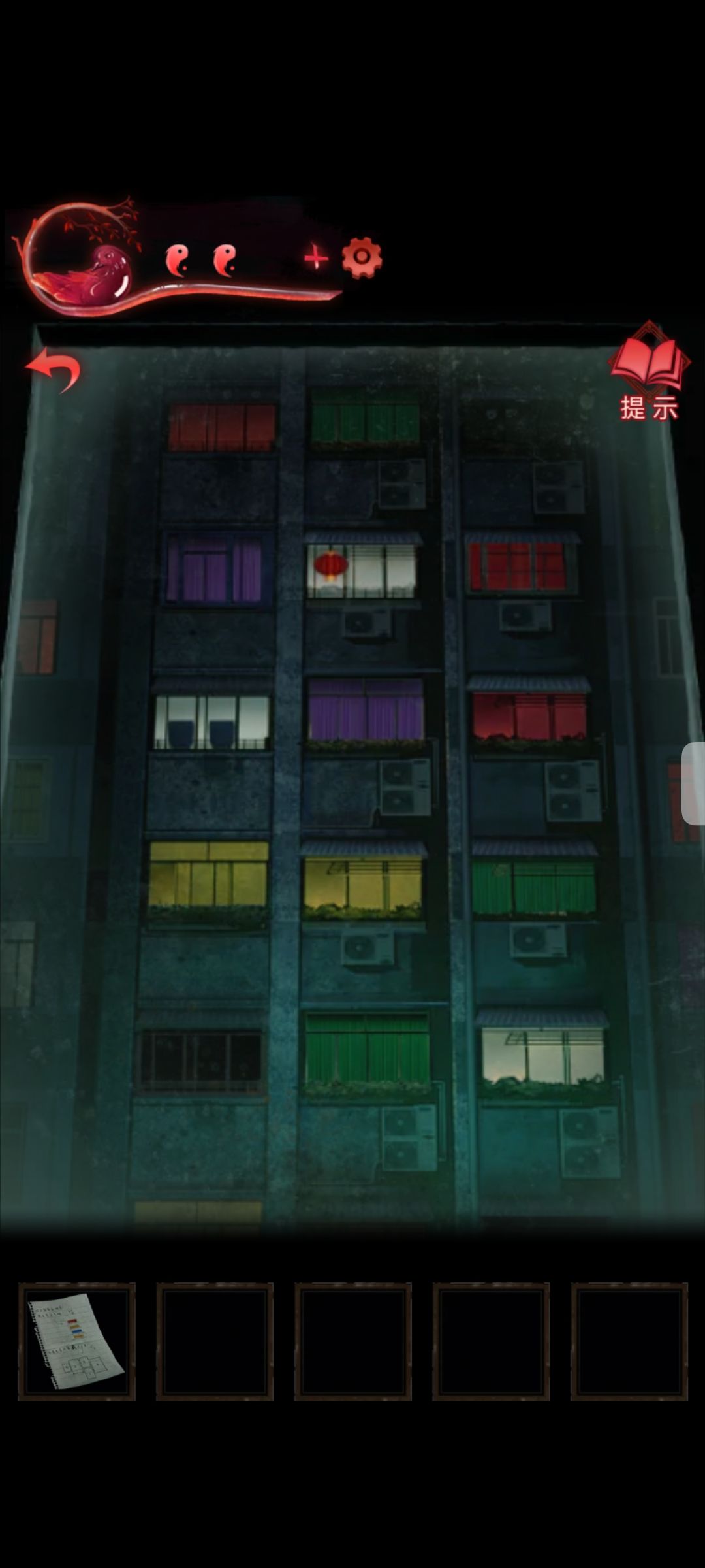 回房间还是那个纸条,看旁边房间的诡异画,得到紫绿橙绿蓝,得到照片放在厨房。