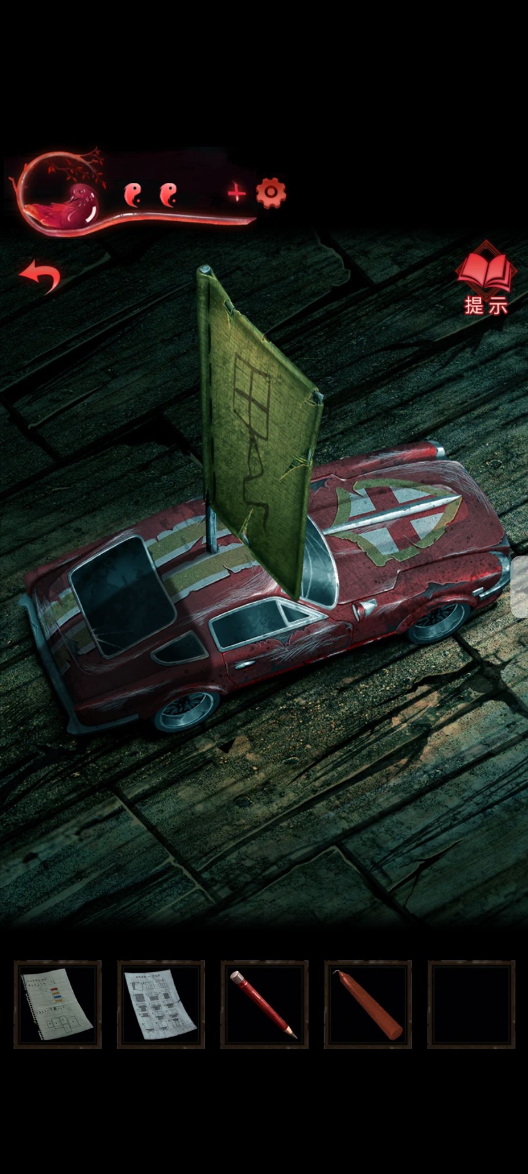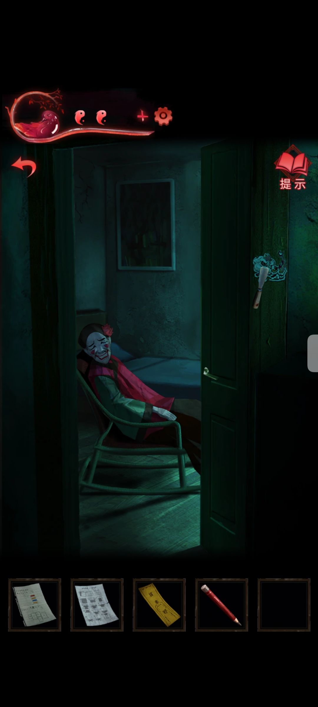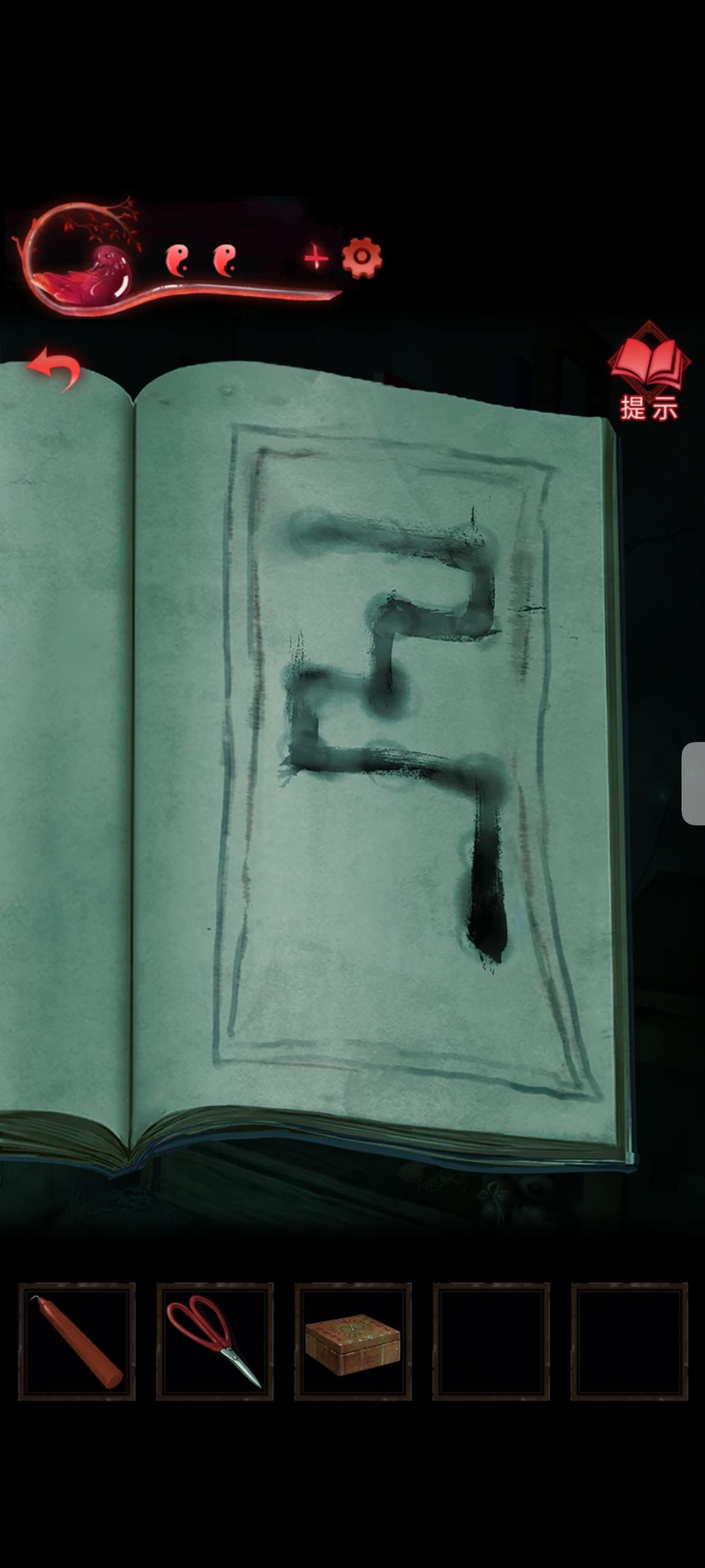 回房间驱邪书最后一页拿到的纸条还记得吧,根据书架上书的颜色得到4235,拿到眉笔,回来在福州上写字,招福来,驱邪去。