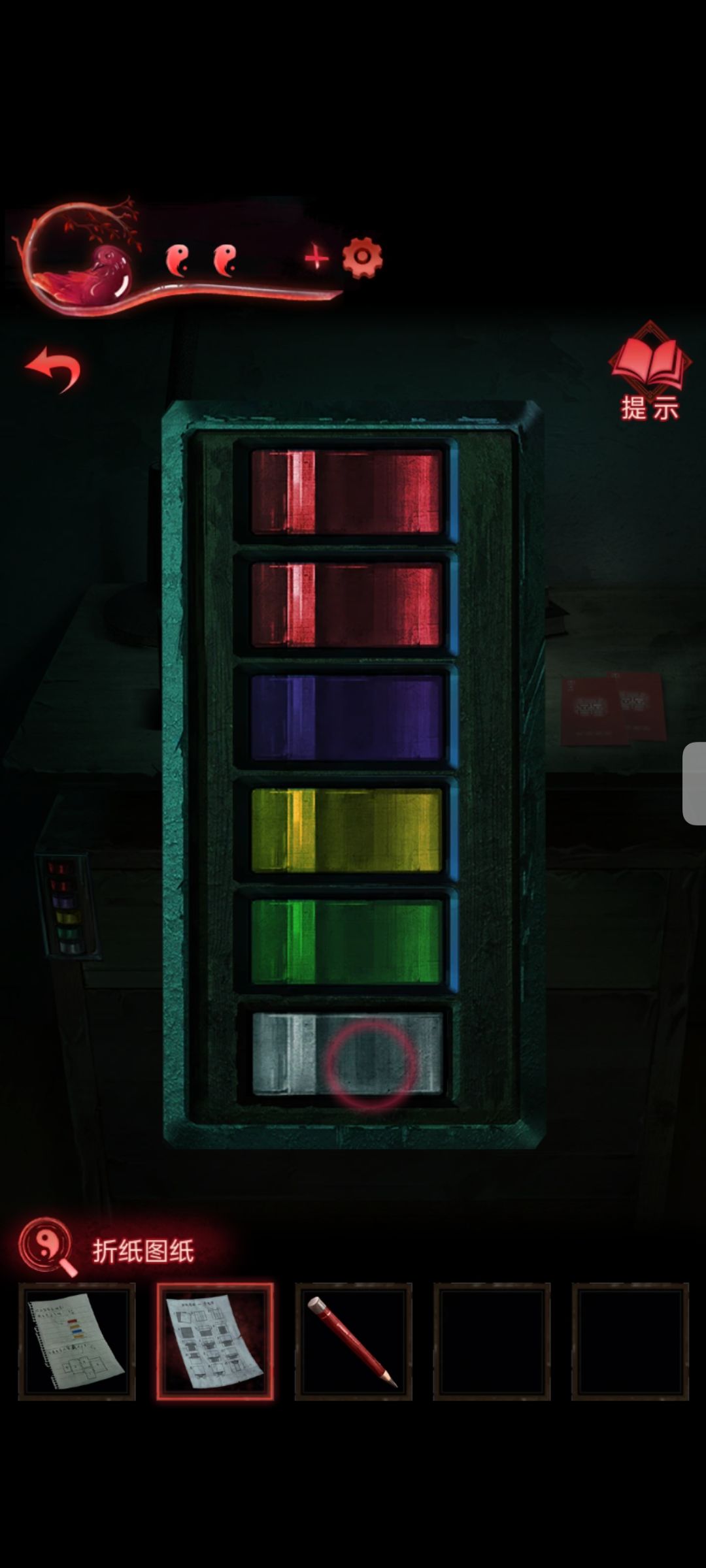 屋子可以进了,进去看到发光的两个地方,点击看书,也要看完。还是之前找到眉笔的那张纸,根据后面看窗外玻璃的颜色,红红紫黄绿白,获得蜡烛。