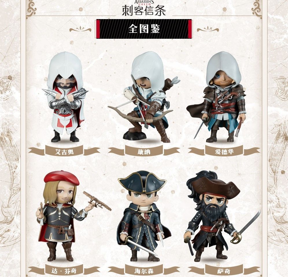 本次的「刺客信条」系列盒蛋中,共有6位角色,且不含隐藏款,他们分别是:
