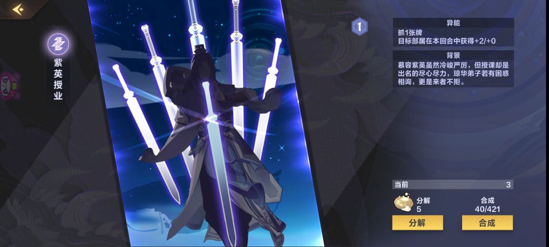 这张卡带了两张 在前期 可以用来防砍头 配合丹青之类的 减费都可以 。就算到了 后面 也是很有用的