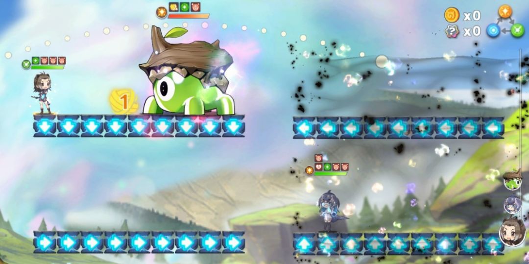 这关是移动平台,注意观察平台的移动规律。最好在2回合内杀掉护盾怪,第3回合异变怪刚好移出黑雾,更容易击杀。