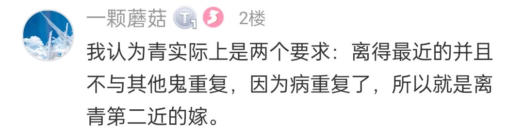 ⑤青:与其他小人所示不重复的中最近的——嫁