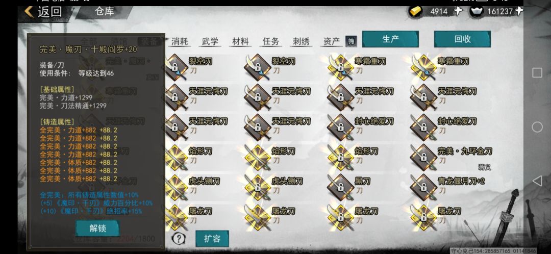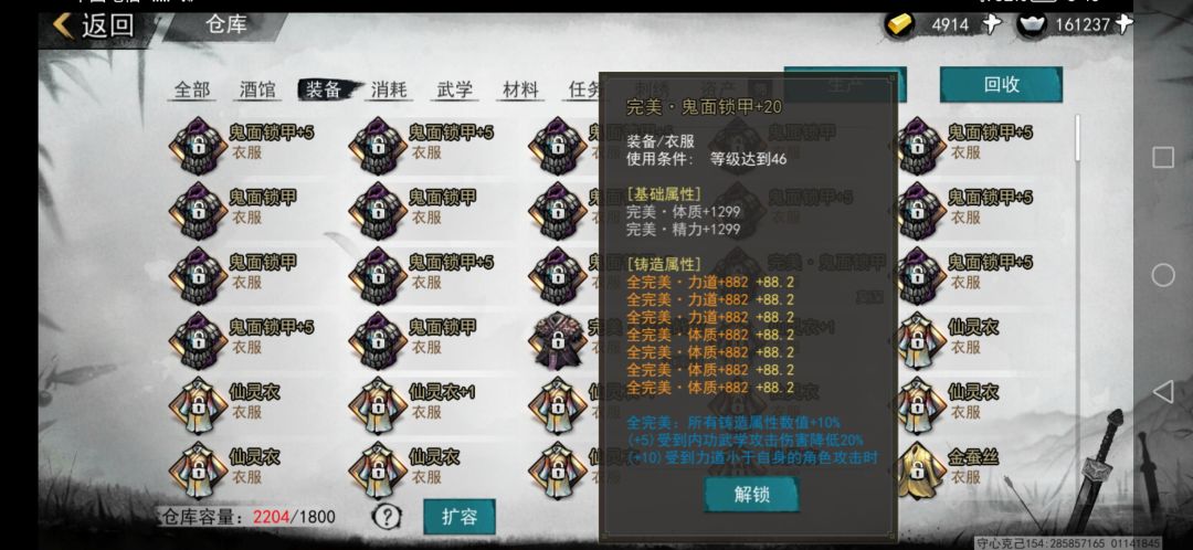 衣服:鬼面锁甲5级磁条+武功等级磁条