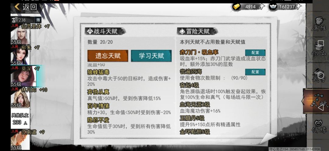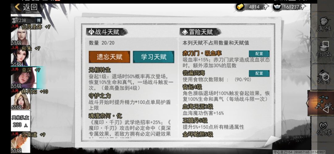 年底比较忙,莫深情缘+柳朱情缘还没时间去做,少了几个天赋自己适当搭配增伤以及减伤。老角色现在毫无作用,新角色一个比一个变态,而且全是专属装备,以前做的装备完全用不上,望官方三思而后行。