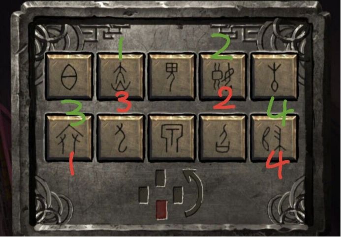 ①回到婚庆店内,点击桌子上的箱子。左边的顺序为从上开始顺时针,根据刚才易寿堂内的提示依次点击。右边的顺序为从下开始逆时针,依次点击。如图所示红色为右边的顺序绿色为左边的顺序
