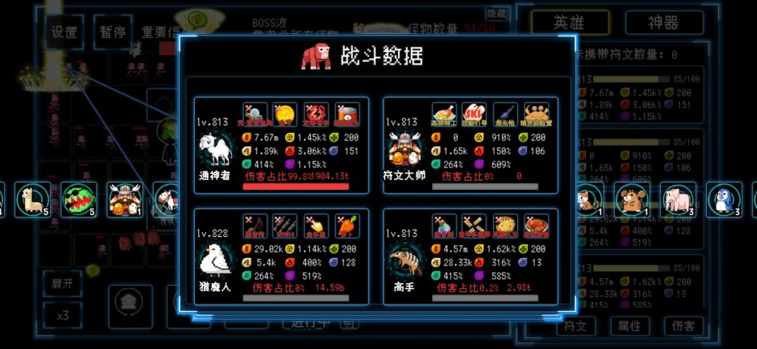 神器方面前期选的暴击率 在拿完成长装备之后就疯狂拿暴击率神器 叠暴击率给凤凰和罐子 (此时的小可怜蛋糕没转职也没符文 孤苦伶仃到我打不过小怪。。)