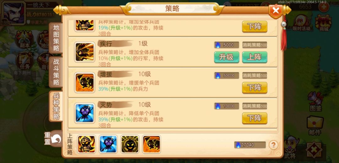 我花了100元宝,重置了所有策略,兵团策略把增兵39和防御,还有降低敌方攻击点满了,这是前提。
