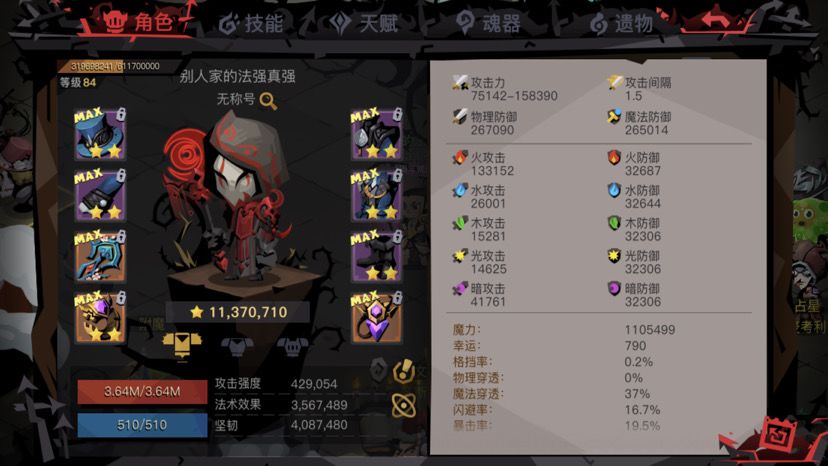 属性如图,这个属性不需要全清小怪加额外属性,操作得当正常打直接下层就可以,我第一次过的没有84法杖首饰,但是要全清怪而且太看脸,有时间的可以去尝试