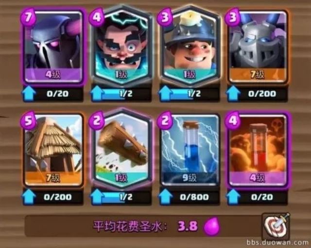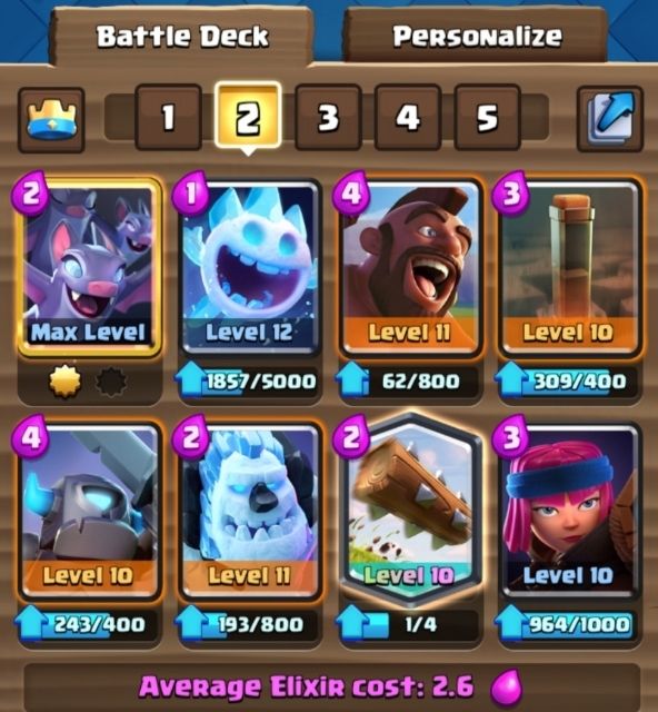 这套卡组在当时看来,贵是贵了点(远古传奇爆率极低),但是强是真的!双倍圣水一到,沉底一个大皮卡,等到她走到桥头后面立即跟上双王子,在那个没有电龙电法小电车的时代,试问有谁能挡住这种进攻?你要用苍蝇海来解吧,我手上还有箭雨;你要用地狱塔来防吧,我还带了一手冰冻。费用供应不上也没关系,这套卡组还带有圣水收集器!如果你又说这套卡组对空能力差和范围伤害缺少,冰法和公主已经够对面解一波了!那时公主一生之敌滚筒滚木都没有推出,自身的数据也比现在高——越级秒杀哥布林、高一级箭雨打不死、巨大的aoe范围......