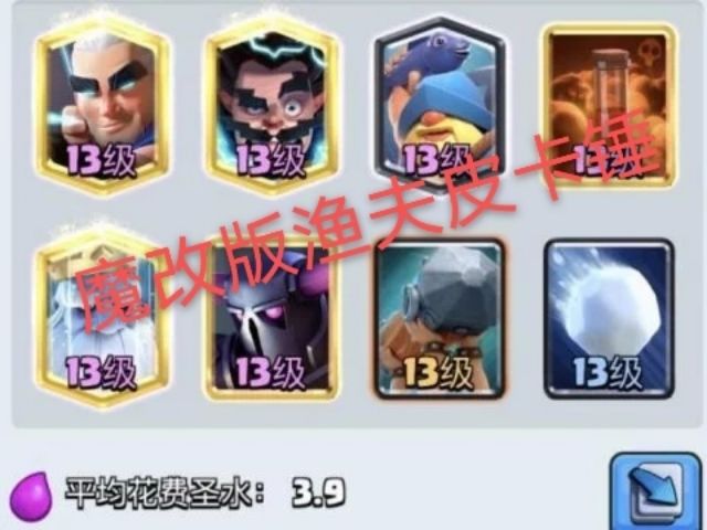 让我们回到皮卡的话题。在皮卡冷落了一段时间之后,建筑也被得到了官方制裁。这时候,玩家的眼光纷纷落在了当时刚出的两张传奇卡中——也就是冰法和公主。心灵手巧的玩家们配置出了一套“全明星”“皮卡双王”卡组,并带上了冰法公主两张传奇、万箭冰冻双法术、以及在当时被称为“卡组必备”的圣水收集器。这套卡组在当时的高端局慢慢崛起,也渐渐代替了当时横行的建筑流,同时还是推进流的始祖!
