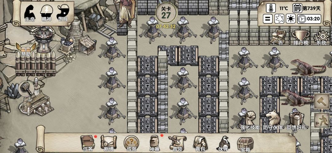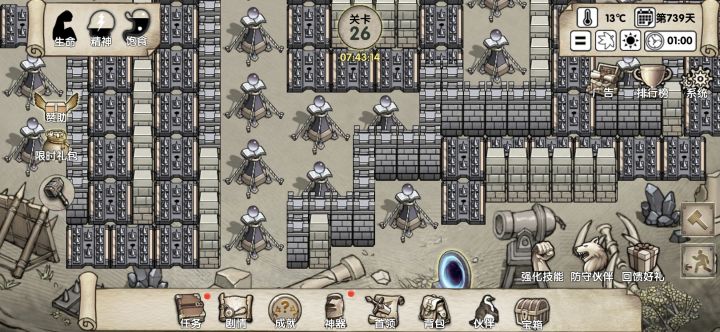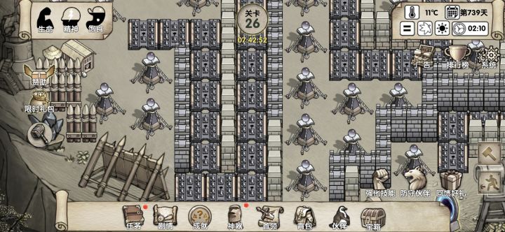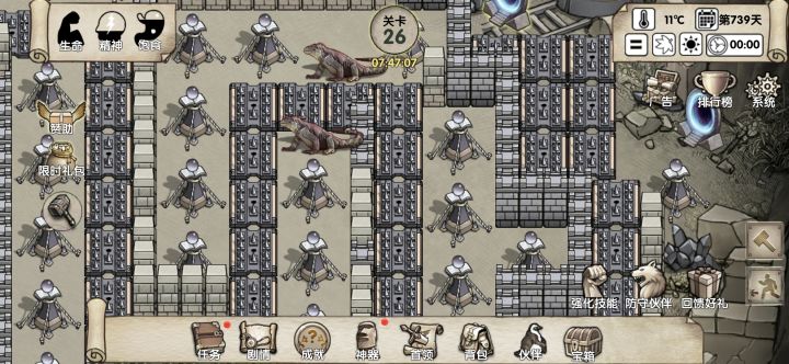 家园的迷宫大阵,用最基础的防御设施把怪物玩死,堵不如疏,画好怪物路线图,让怪物跟着自己的路线走,只玩了十一天,后面的关卡有没有效不清楚,26之前怪物都没机会走到家里去😌 共享个小技巧那就是使劲睡觉,一天务必睡12小时,让时间过的快,那游戏内靠时间刷新的道具(主要是无序、笔记、珍珠、第二章的副本boss)间接=缩短了一半刷新时间😋