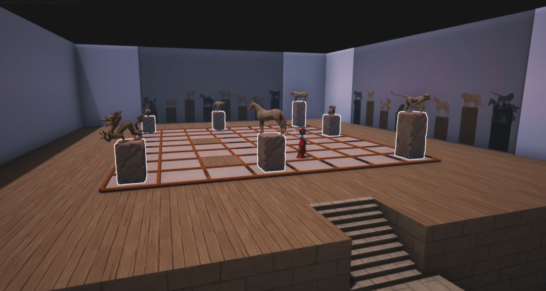 这周工作室每位同学都试了试阿鲁鲁高(《藏梦》游戏策划)最新搭建完成的谜题,这个谜题与传统文化的十二生肖有关,玩家们需要充分利用对光影的调配来进行解密。在设计逻辑上,我们对解密游戏中常规的光影对合模式进行了一些变化。
