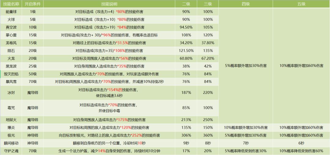 《天使之战》魔法师技能数据一览