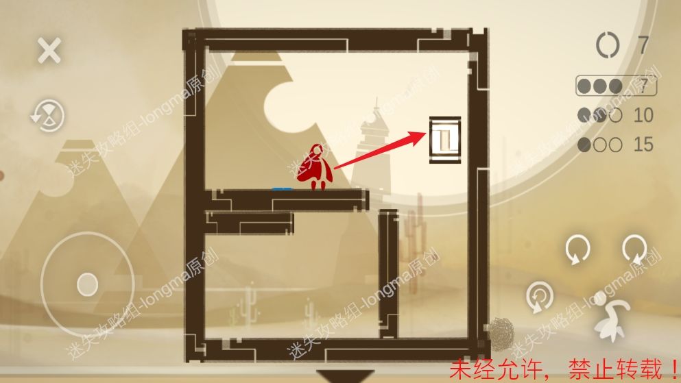 3.向右旋转,向右融化异色墙,使异色墙比左边的墙低,跳上左边的墙。8.3