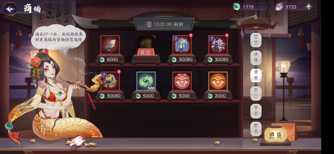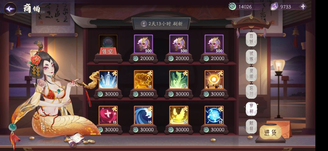 (强调一下为什么13-1不要妖魄购买,因为刷新到300可以买7次,那就是3500灵钰,再加上悬赏每天固定收益4000-5000灵钰,这还不算时空之门,活动副本,六界飞楼等其他获取方式,有的人说太古币不够用,那我想问下妖魄就够用了?孰轻孰重,自己明辨!)