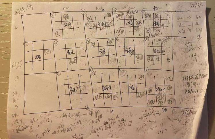 在EXCEL中把地图按实际顺序放好。可以插入图形(如下方的大X和小X)和文本做标记。