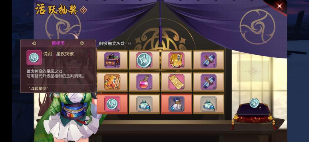 PS:每日可许愿的材料都是随机的,可根据当日实际情况选择(比如本次许愿,一共获得了24(12+12)星相币)!