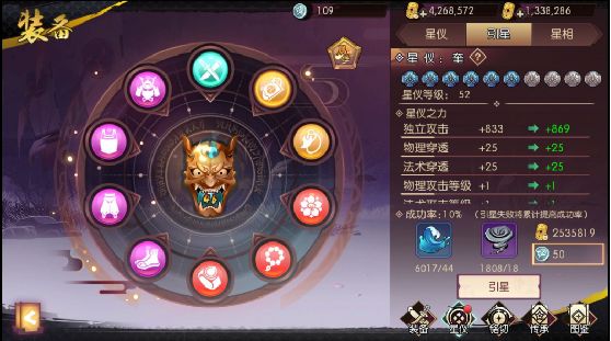 PS:星仪不管是主提升属性独立攻击,还是下面的物理/法术穿透等,都是比较纯粹的攻击伤害提升。在侍魂中,不管什么职业,攻击伤害的提升都是很重要的。所以对于平民玩家而言左右槽星仪59还是很重要的。