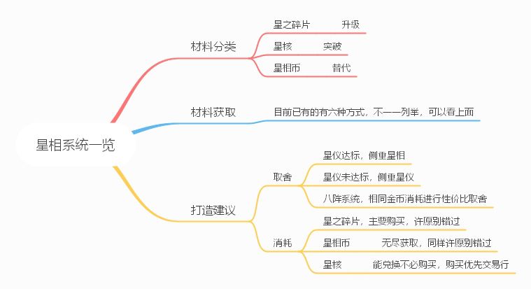 星相系统刚刚推出不久,但其稳定提升、高性价比的特性,个人认为在70版本是必须跟上步伐的。还没有解锁星相系统、或觉得不重要的小伙伴,应该多方面权衡各项玩法提升的优劣势,做一个取舍。当然,这个取舍都是阶段性的,只是某一个时期的优先级排序。感觉获取困难的小伙伴也不要紧,毕竟随着游戏进度不断更新,各类活动的不断开放,材料获得只会越来越容易。