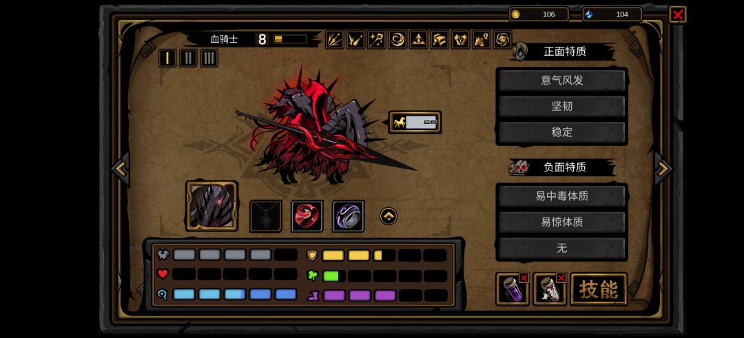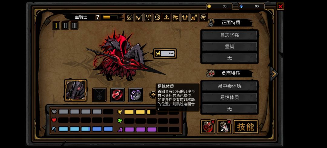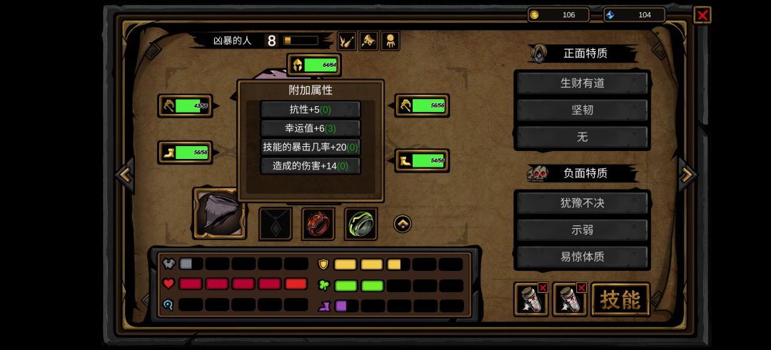 然后这个游戏只要你战斗,不管你之前得到的正面特质也好负面特质也好,只要你没获得锁属性的项链,战斗过程中体质都可能被替换