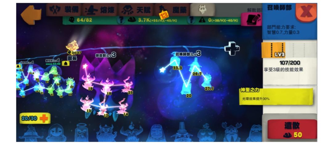 召喚部lv3光環30%