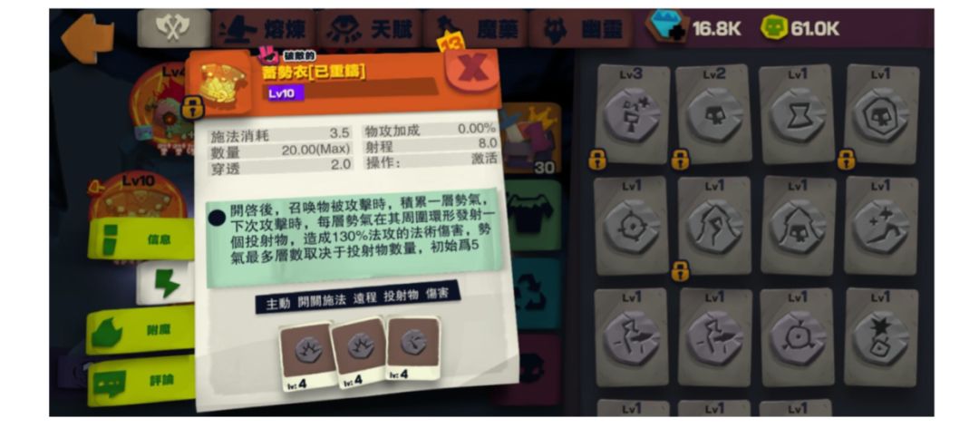 4)蓄勢衣加上投射物減速和投射穿透後,有機會增加投射物相同目標的攻擊次數,效益不錯。