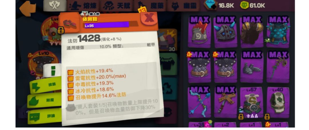 然後就是護盾狀態下傷害減免+20%的大天賦。因為依附鞋是能將傷害減免加到召喚(單一) 身上的,因此配合衣服上的魔法詞彙傷害減免20,就能做到傷減40%的效果。當然,再加上幽 靈更...XD