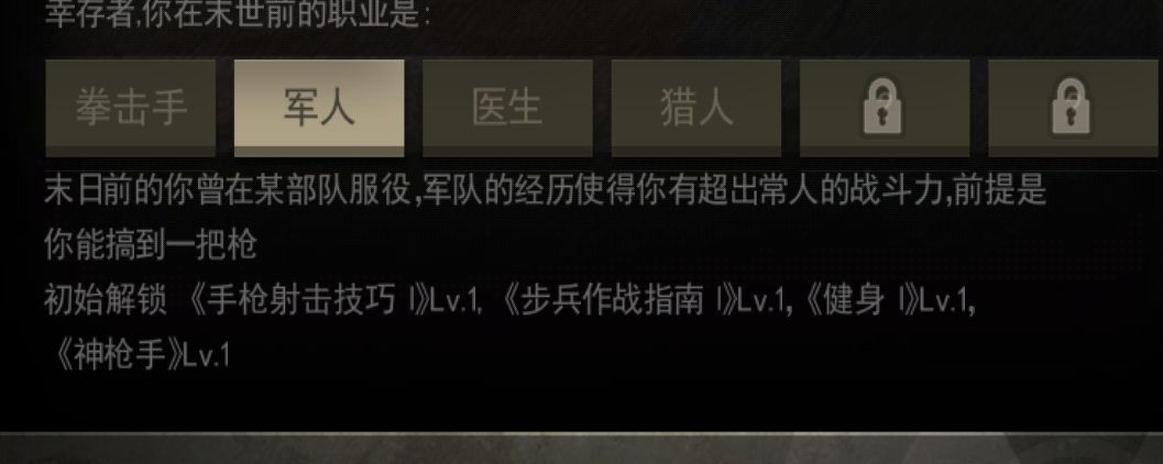 军人:开局领先一个神射手(每级加2%远程暴击率)前期开图一般