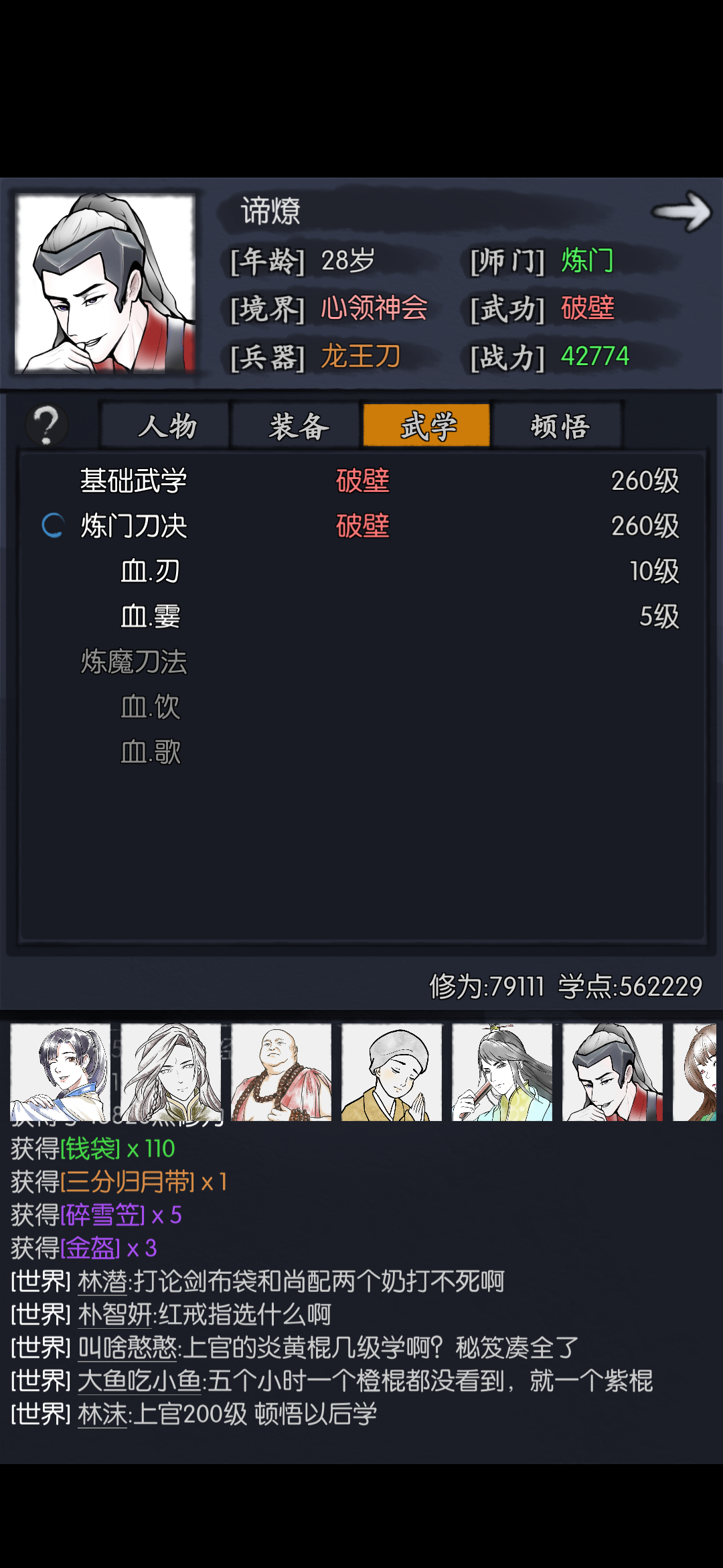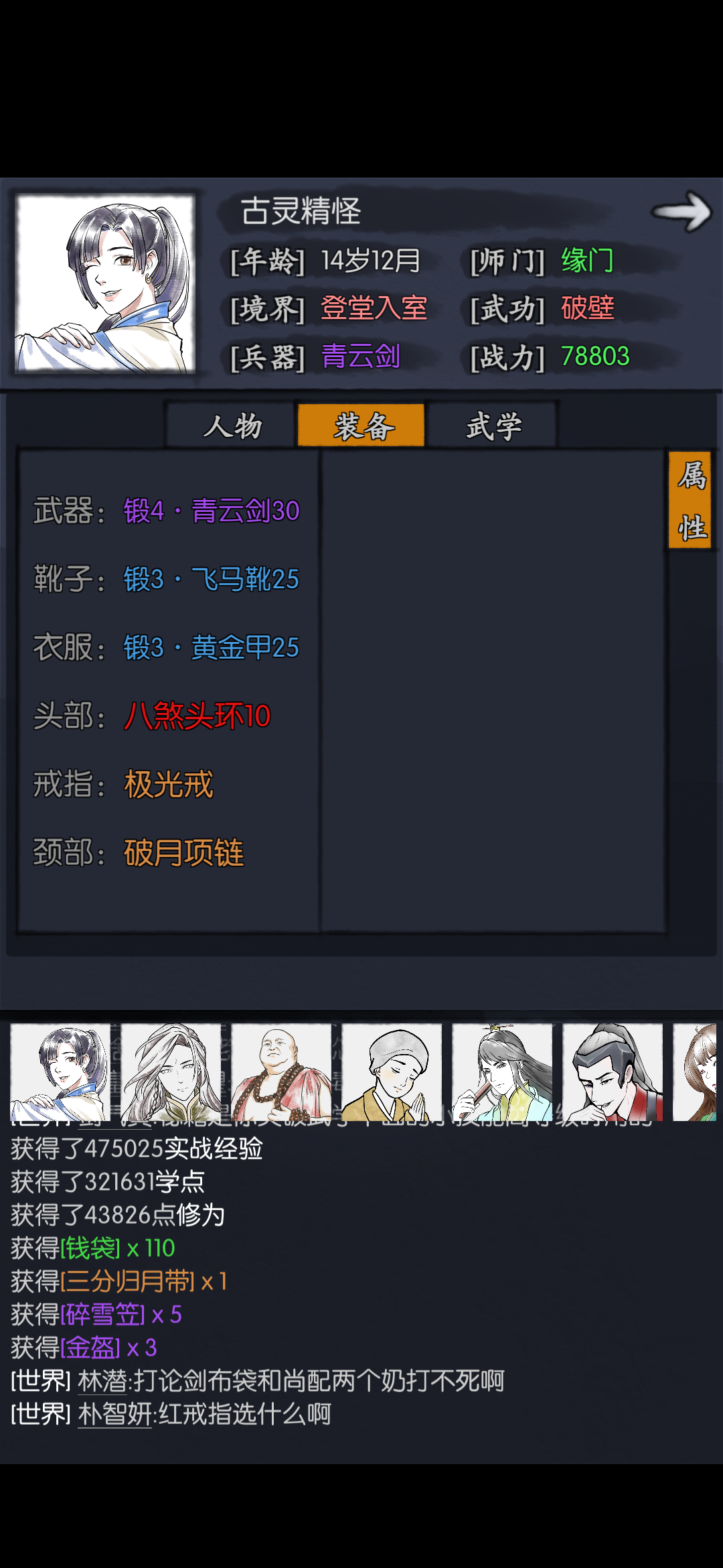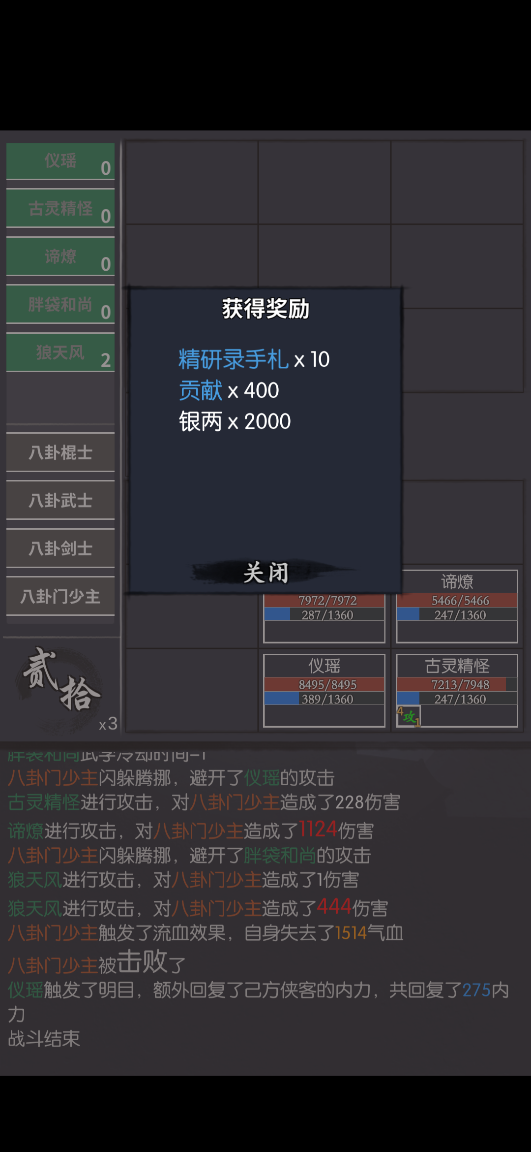 打八卦门少主颇费了些周折,用林一直打不过,后来换血刀(林装备给血刀)才过