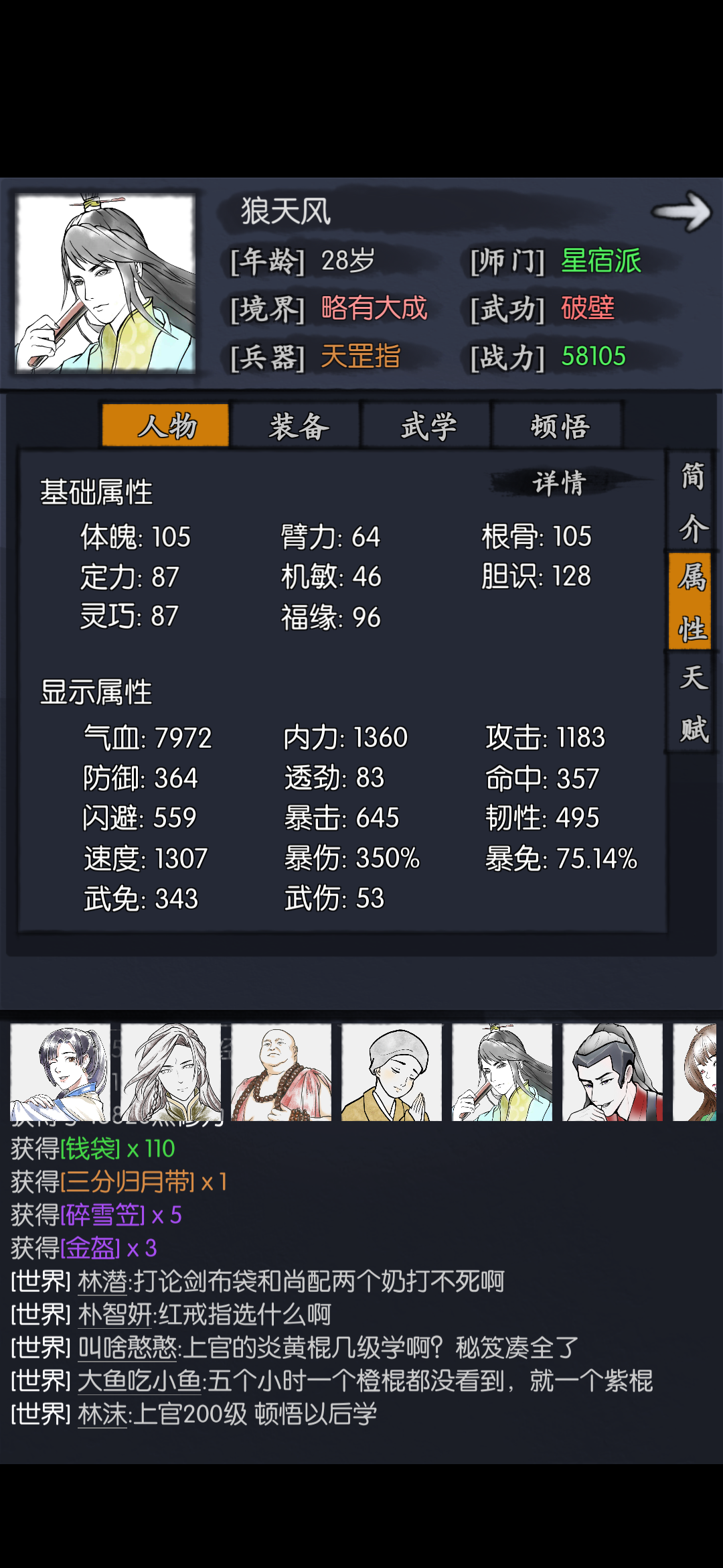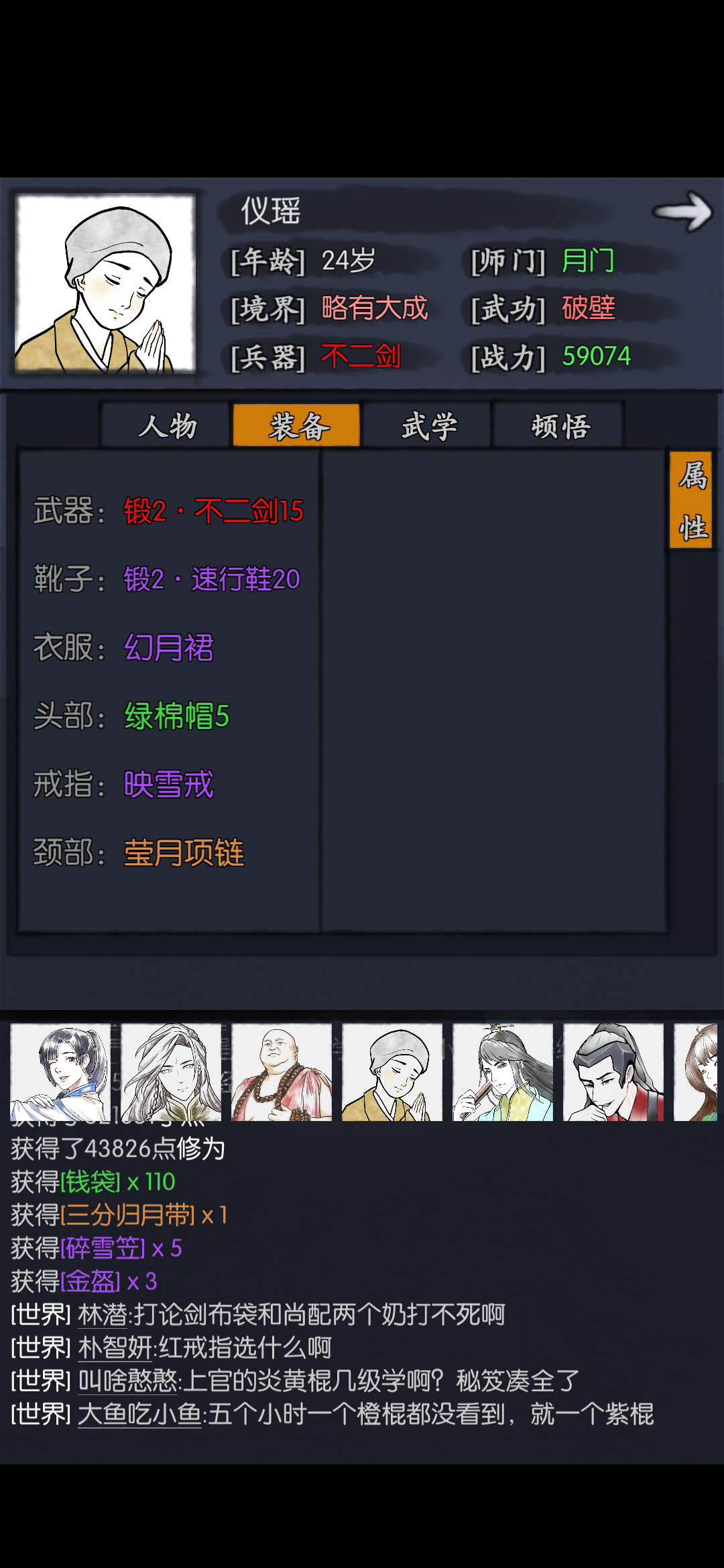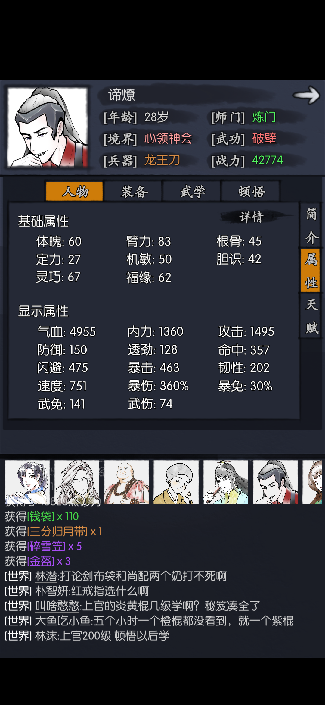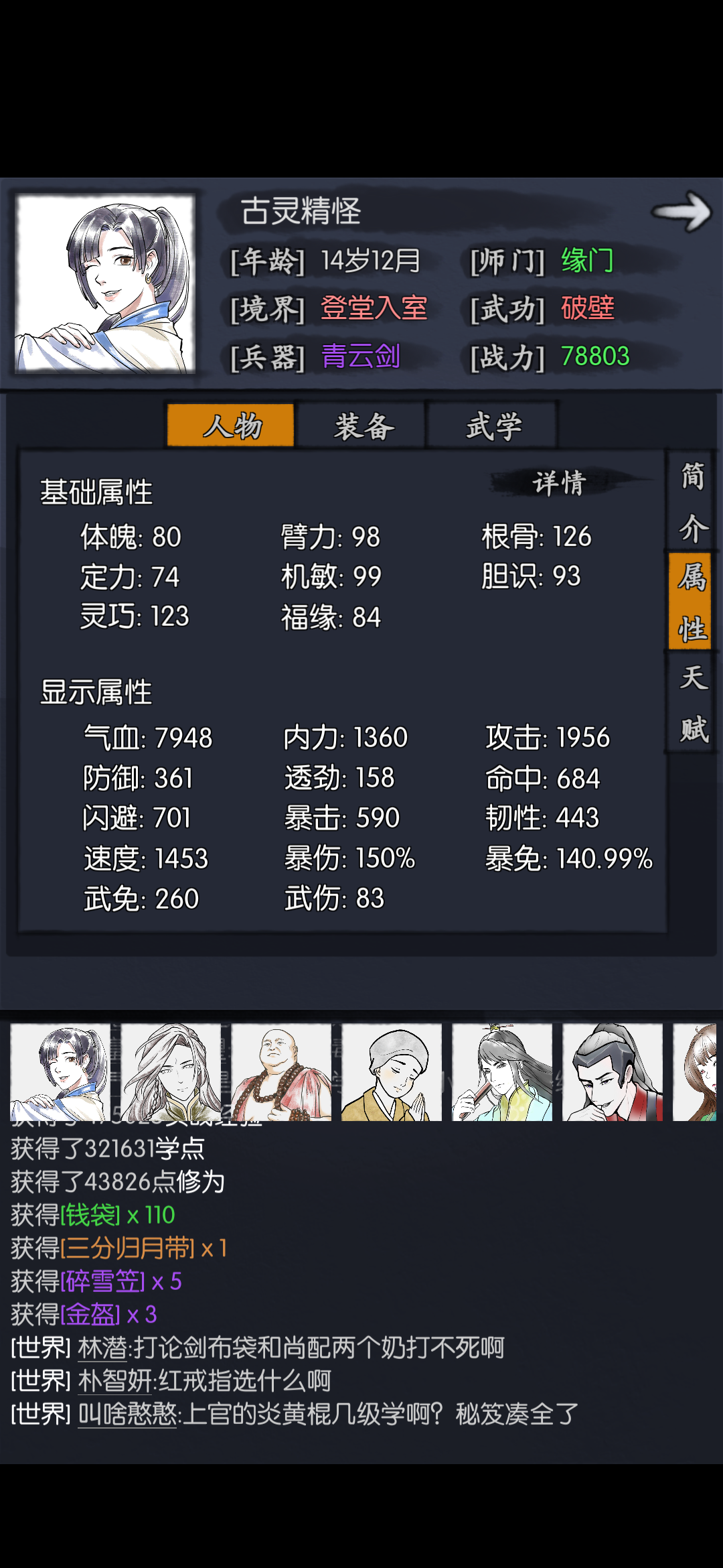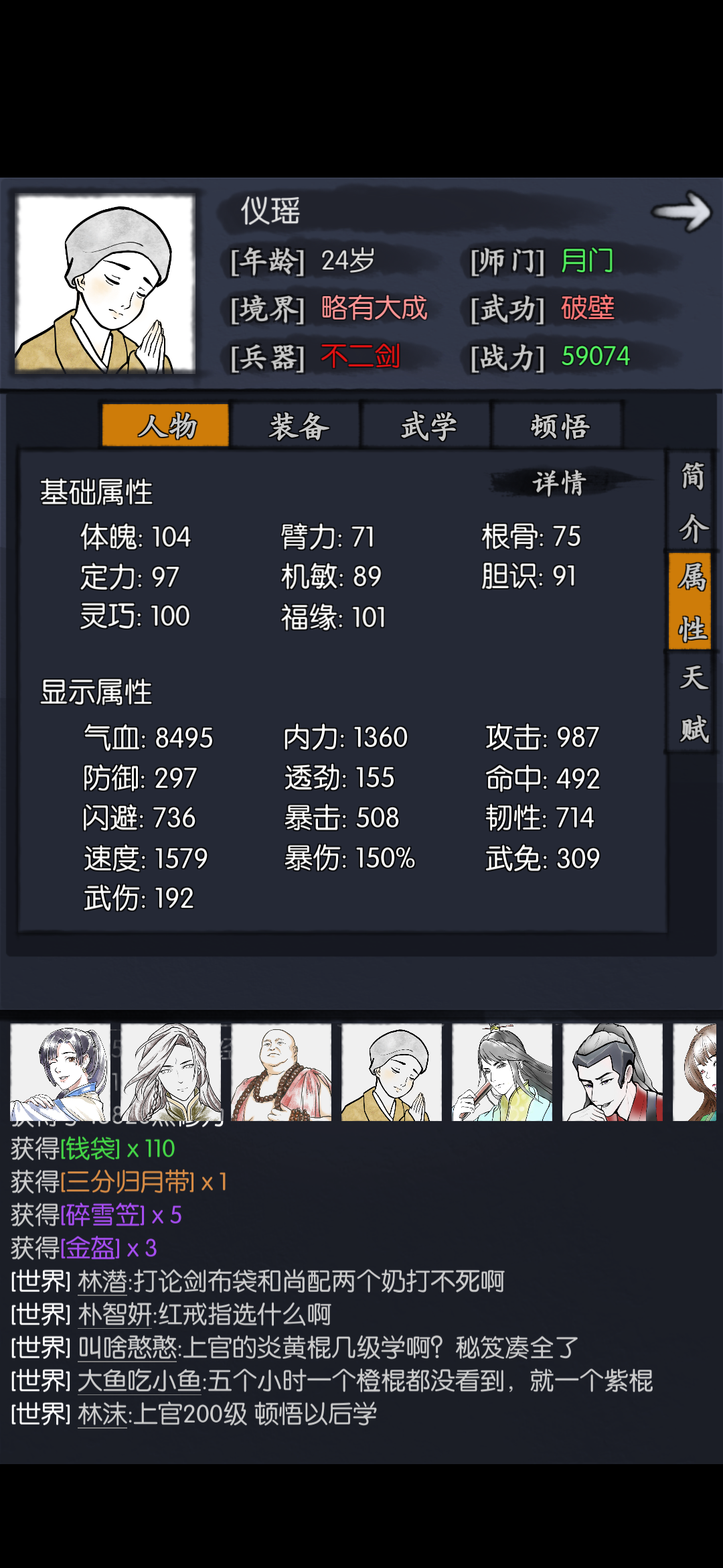 3楼朋友想看看我侠客装备,这里贴出侠客装备、技能、属性以供参考