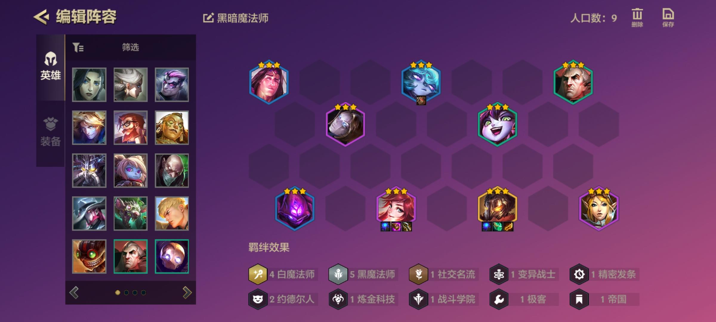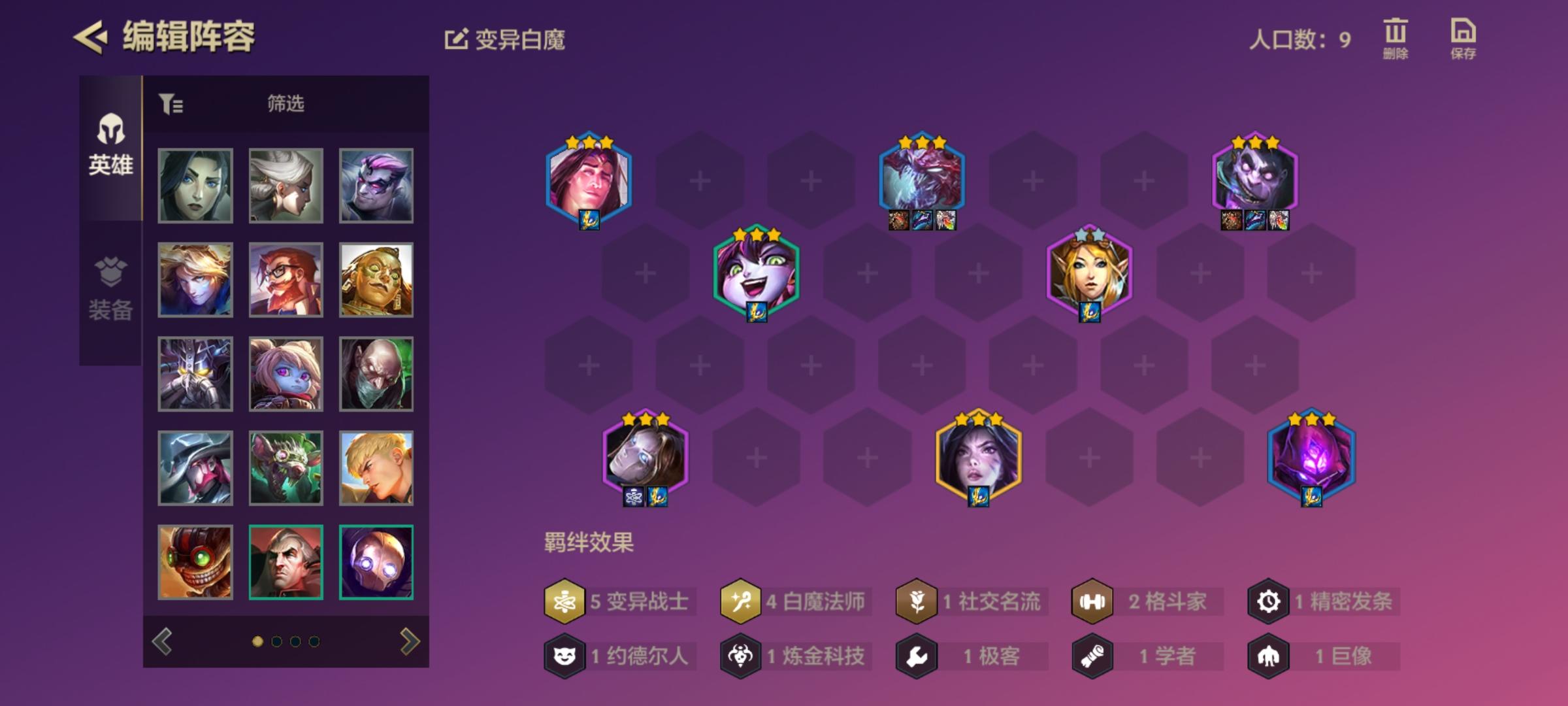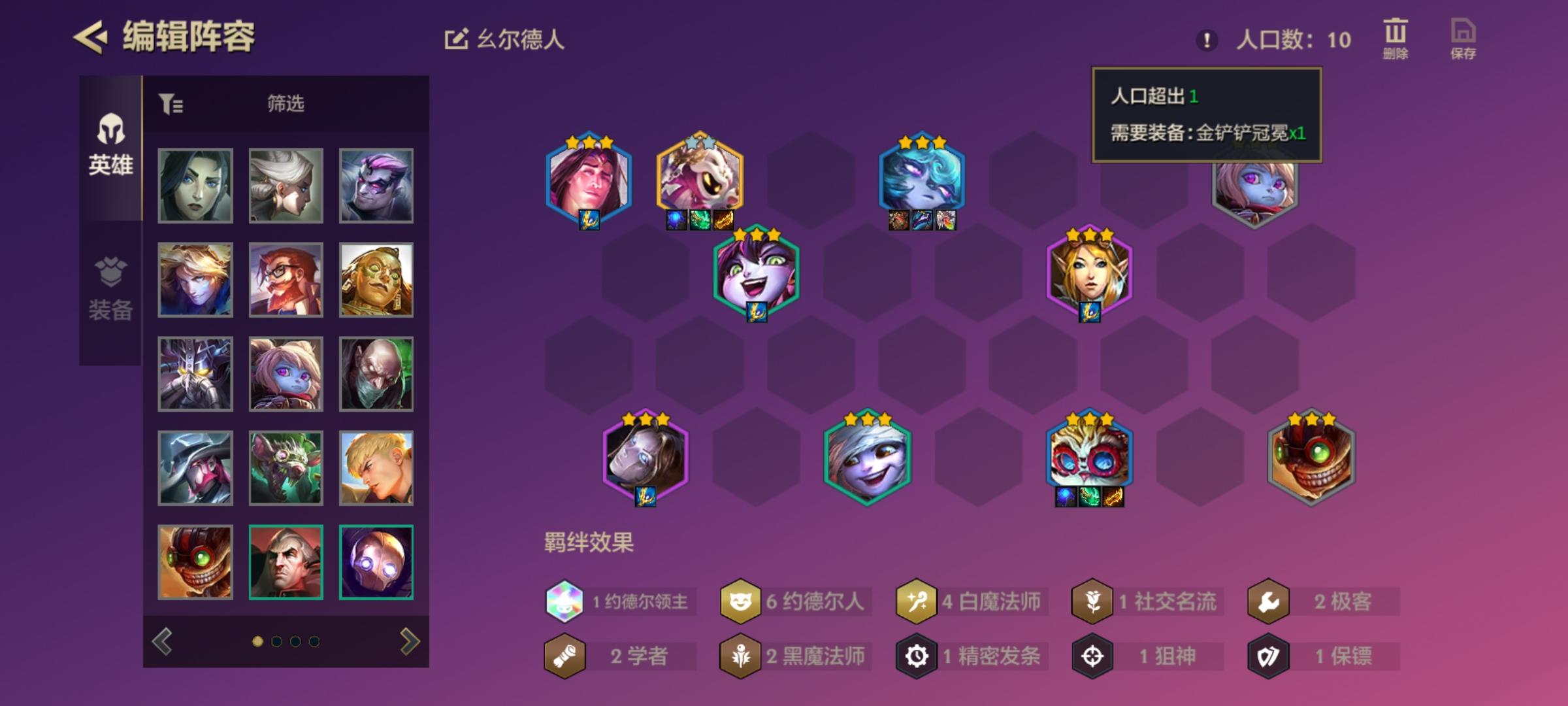 3.速9阵容3白魔法,幺尔德人阵容(最离谱的一局,6家都在玩约德尔,感觉内卷太激烈,被迫速9玩法,看运气恰烂分或老八被抬走。)