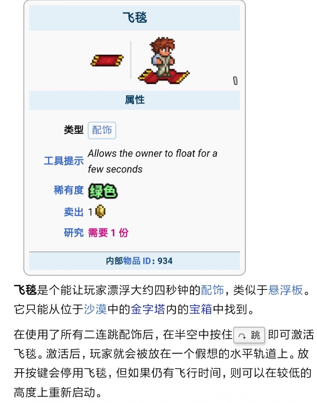 在沙漠可发现裸露出一角的金字塔,进入其中开箱子可能得沙暴瓶和飞毯(开荒神器)如下图 没有的话可以再开图