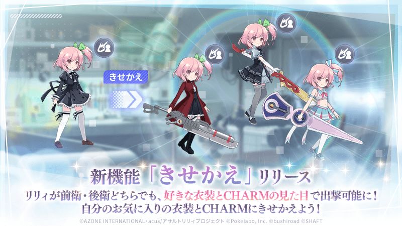 新功能增加,换装,这类游戏必备功能之一。玩前排的发现喜欢的服装是后排?这次就给任意换装的机会,只要是该角色的衣服就能任意更换