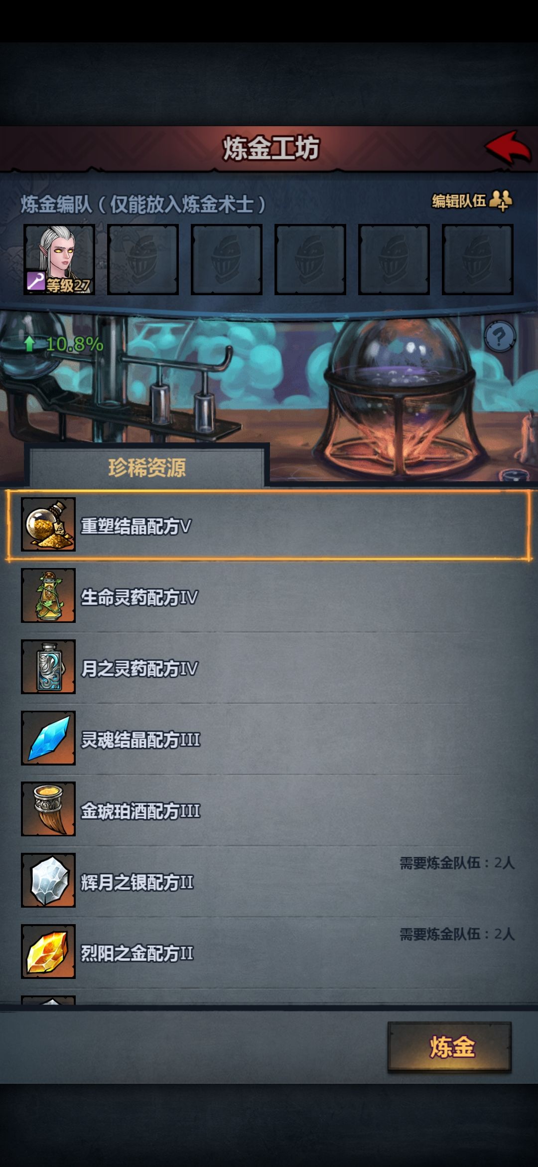 首先炼金术师加成成功率也不是一加一的,和庄园一样,也是呈现指数成长。
