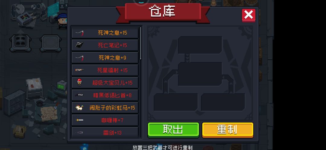 同样的,合成武器也可以直接合成,甚至低等级武器可能被第三把高等级武器等级带飞,比如+15的破手枪和两把+0的剑合成雷剑