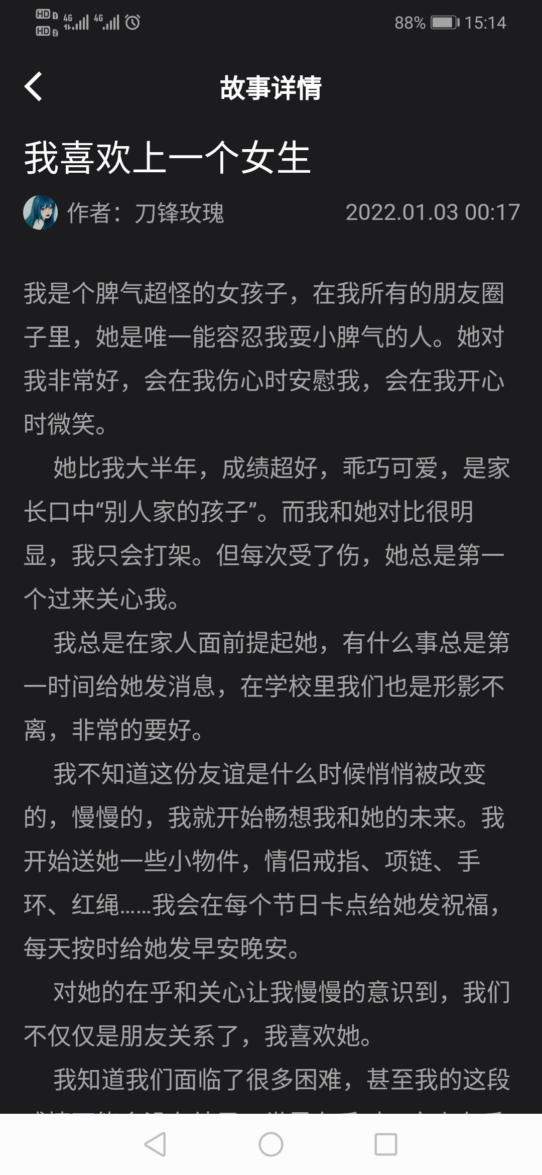 但建议作者,还是要好好克制下,因为你不确定你喜欢的女生她的想法,感情里面,单方面的热情跟负责反而不如讨厌来的让人难过,